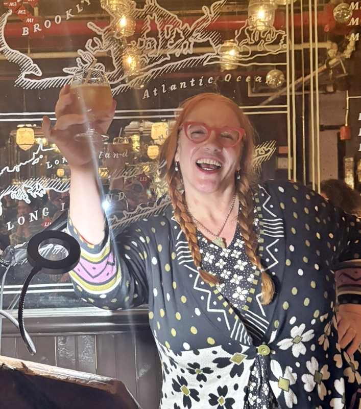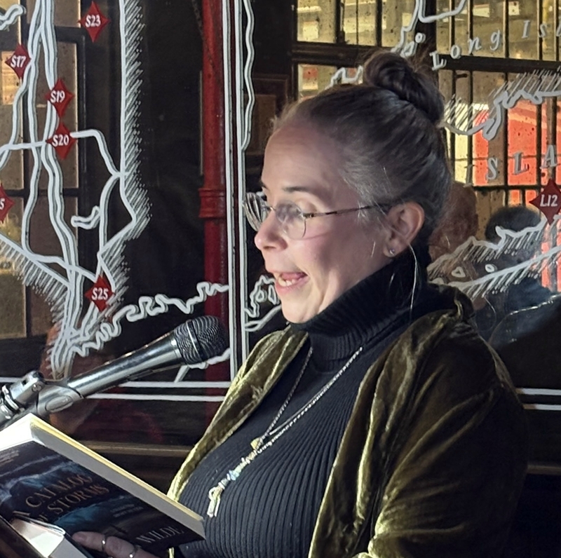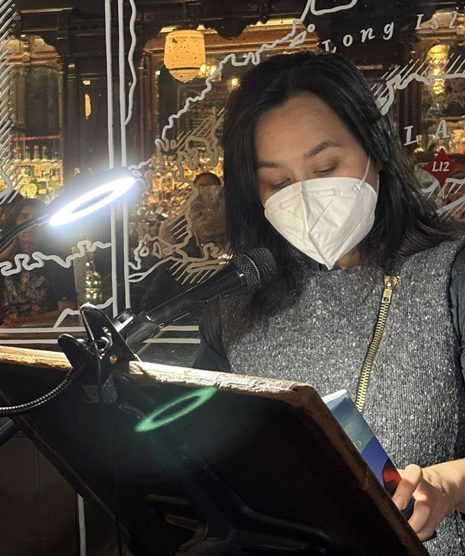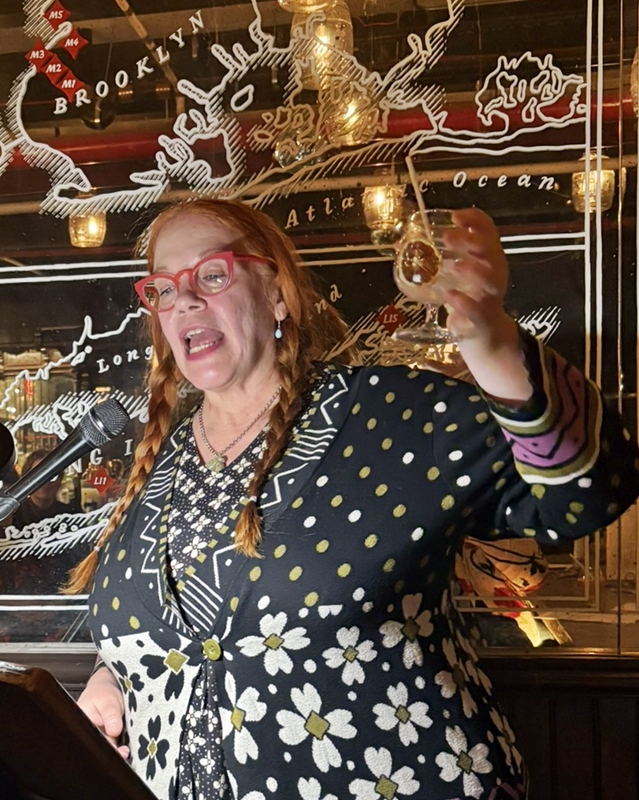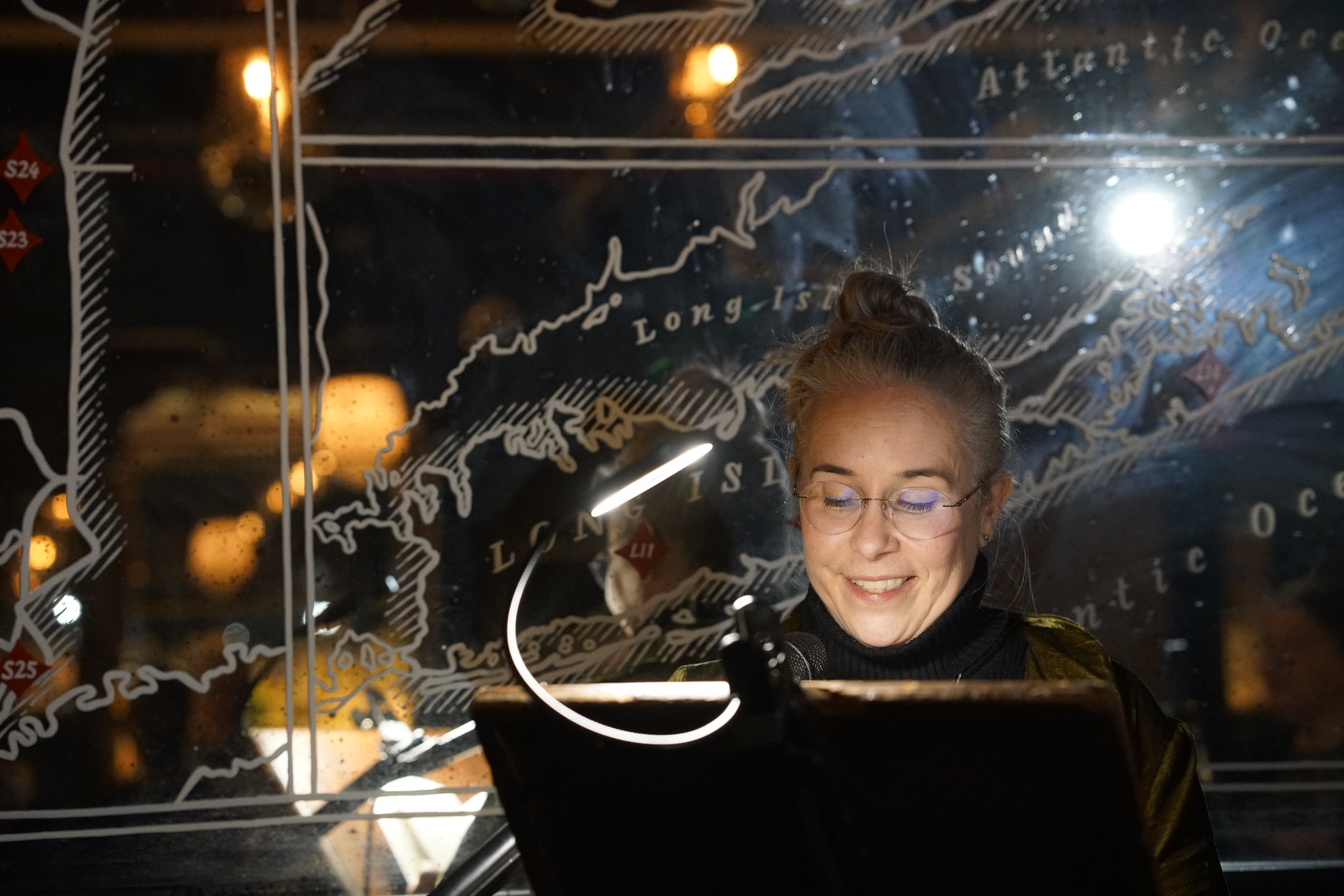 Several issues interfered with this being a traditional rooftop reading; due to a family health scare Randee Dawn couldn’t host, so Amy Goldschlager took over. And a flood at the usual Gowanus location for Ample Hills meant the reading relocated to Ample Hills’ Prospect Park, Brooklyn location for the night. This was also the first anniversary of Rooftop Readings, which kicked off in May 2021.
