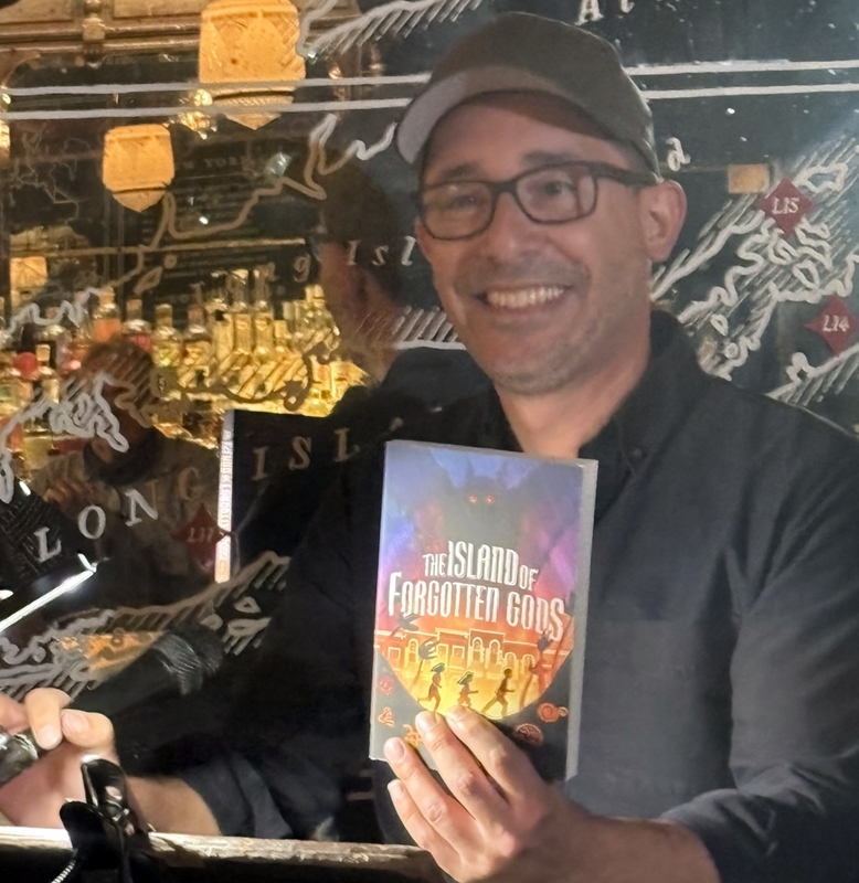 - Victor Pineiro with “The Island of Forgotten Gods” (Photo by Amy Goldschlager)