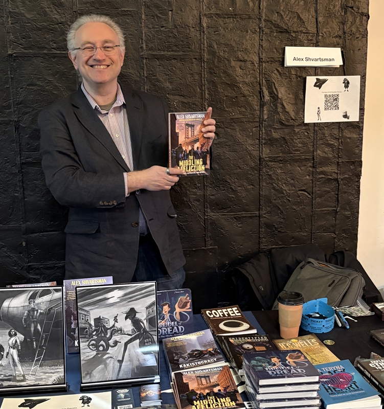 Usual host Randee Dawn was out of town, so James Chambers took over as host, presenting readers sharing stories from Under Twin Suns: Alternate Histories of the Yellow Sign, the anthology he co-edited.