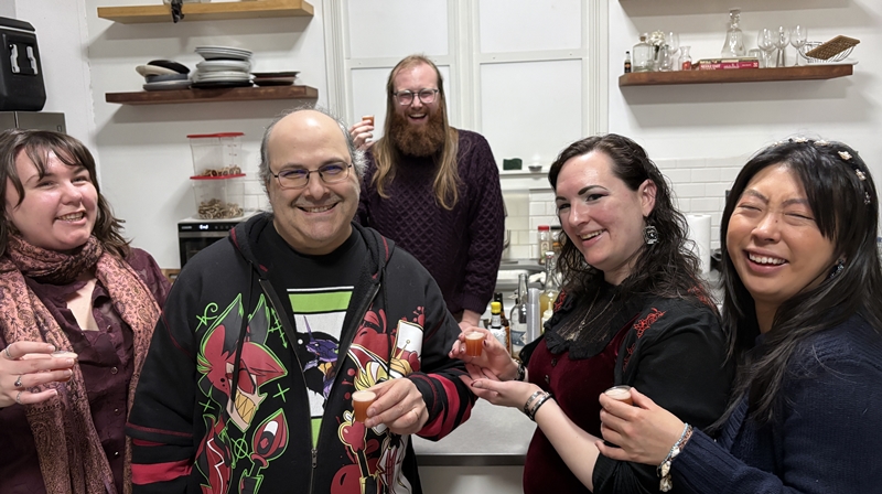 - Post-drinks demonstration (Oregon Trail Buck) with Elias Eells and happy imbibers