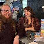 - Matthew Kressel with his book “The Rainseekers” and Shveta Thakrar